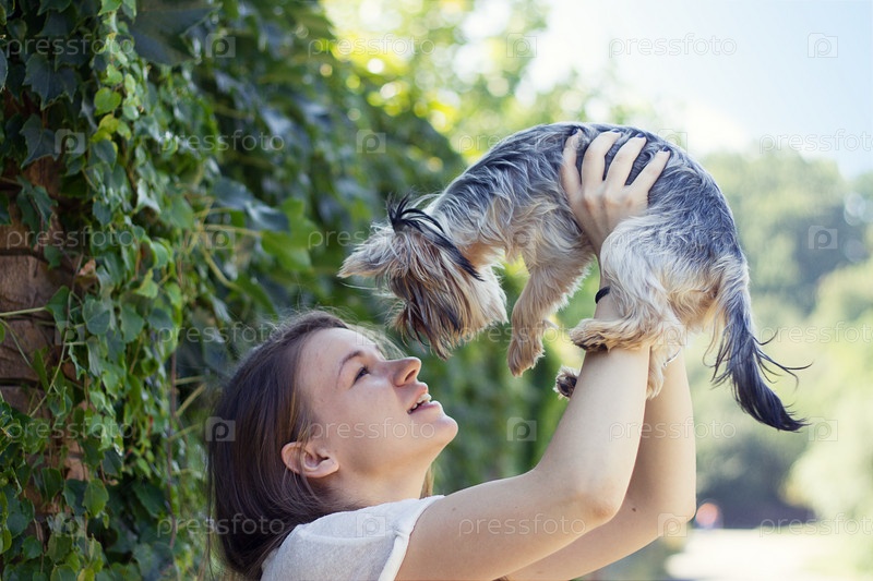 Молодая девушка и Йоркширский терьер