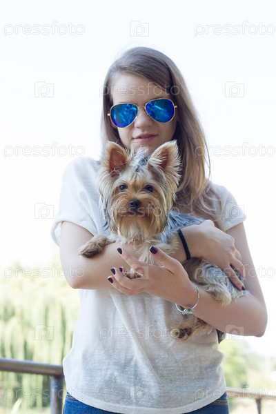 Молодая девушка и Йоркширский терьер