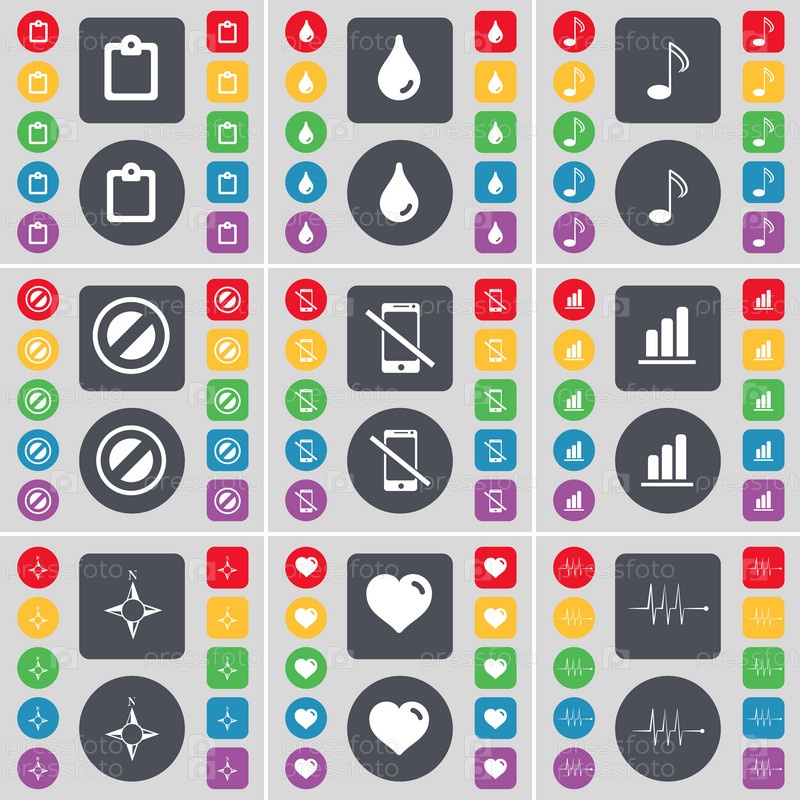 Алексанр, падение, Примечание, стоп, смартфон, диаграмма, компас, сердце, пульс значок символа. Большой набор плоских, цветные кнопки для вашего дизайна. Вектор