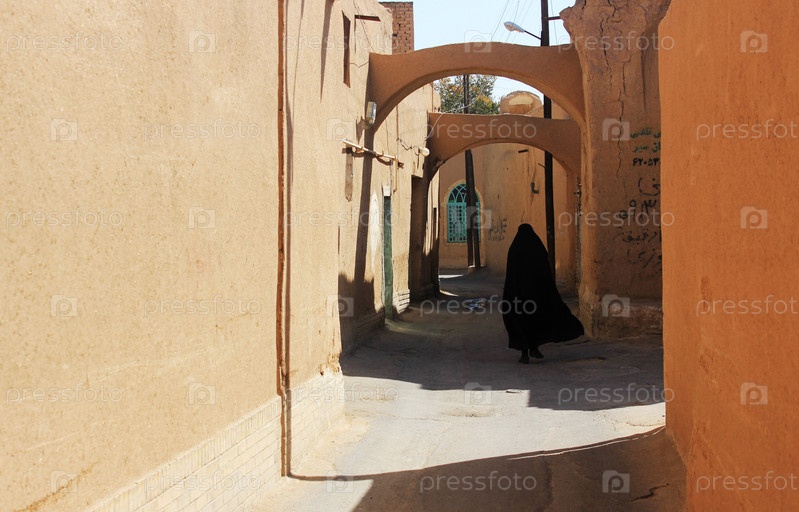 Иранская женщина на старой улице Йезд