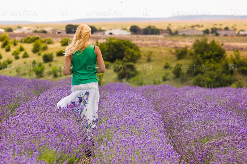 Красивая девушка в сиреневом поле