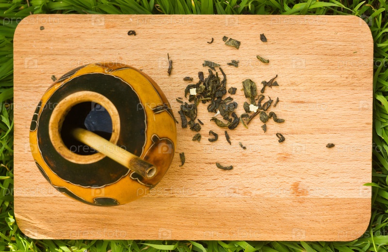 Травяной чай мате на деревянной доске