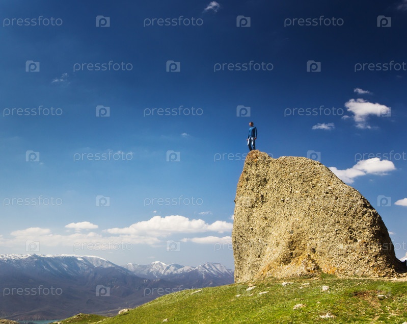 Человек на скале в горах на высоте