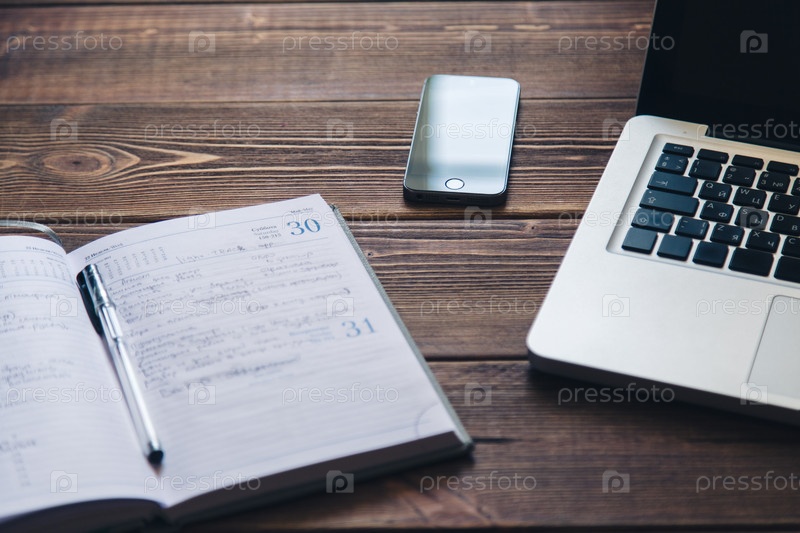 Ноутбук и дневник на столе