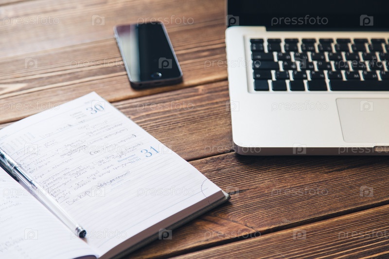 Ноутбук и дневник на столе