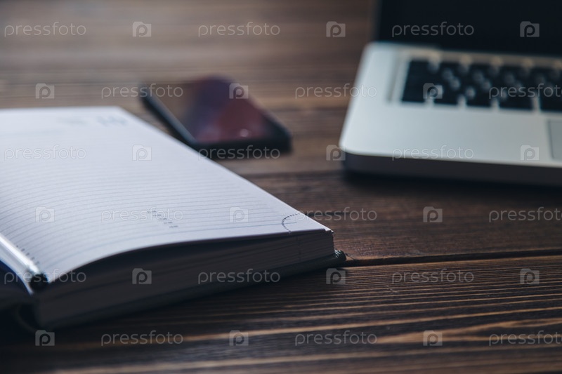 Ноутбук и дневник на столе