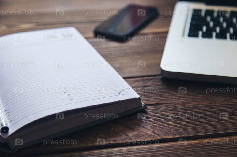 Ноутбук и дневник на столе