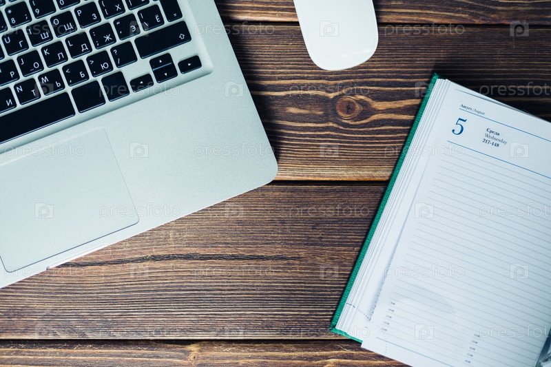 Ноутбук и дневник на столе