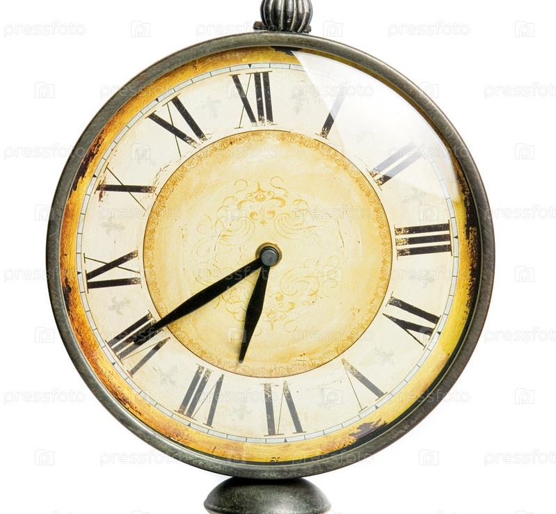 Антикварные часы крупным планом. Изолированные на белом фоне