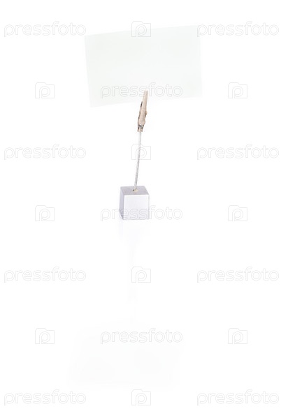 Пустая визитная карточка в держателе на белом