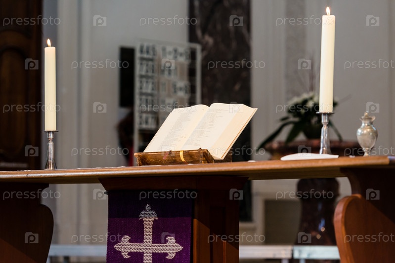 Откройте Библию и свечи на алтарь церкви