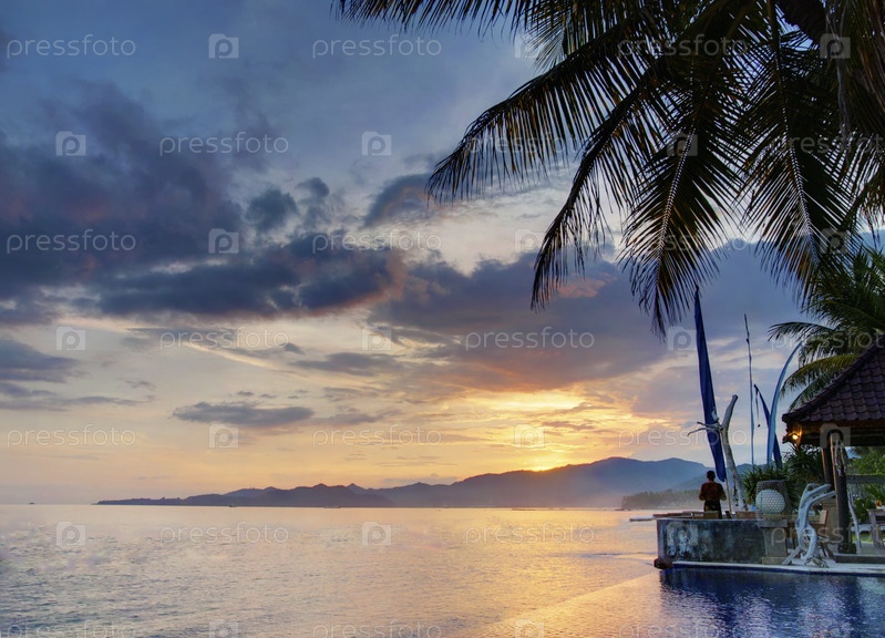 Красивый закат на балийском побережье с Вилла класса люкс