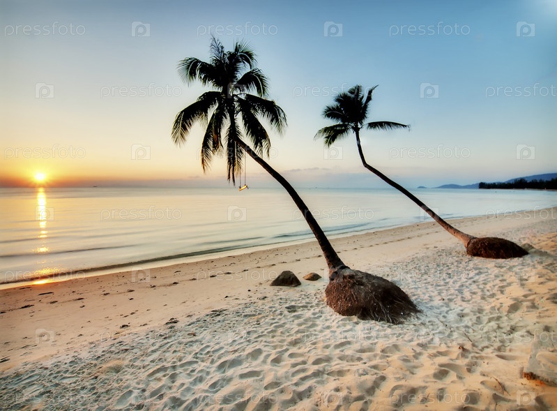 Красивый закат на пустой пляж в Таиланде