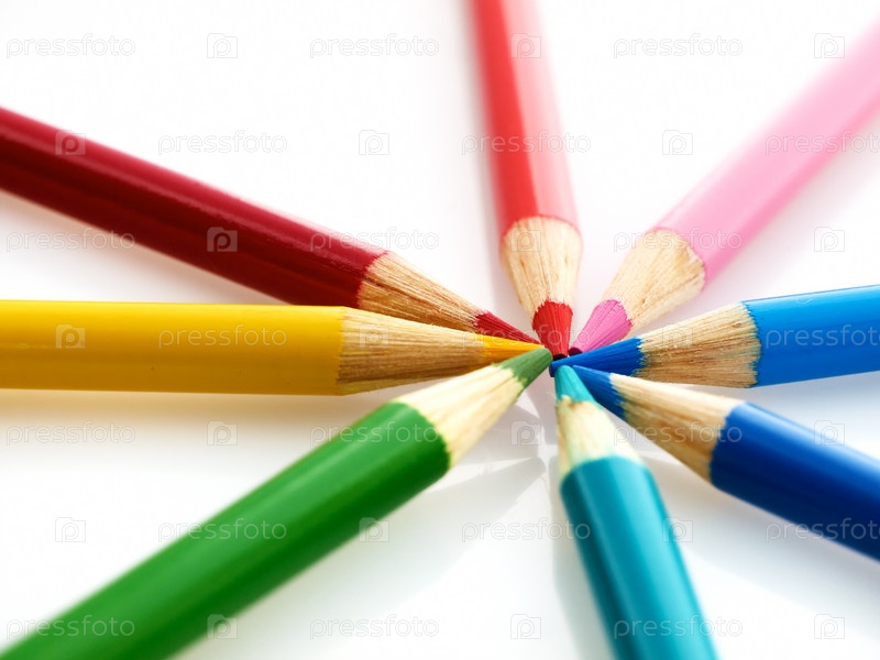 Деревянные карандаши на светлом фоне. Концепция совместной работы