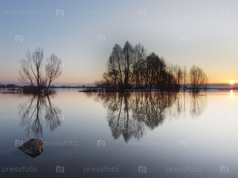 Высота воды реки на восходе солнца. Весной на реке Ока в России