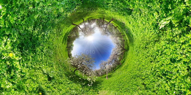 Панорамное изображение выглядит как планета. Экология и космос концепция