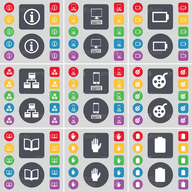 Большой набор плоских, цветных кнопок для вашего дизайна. вектор