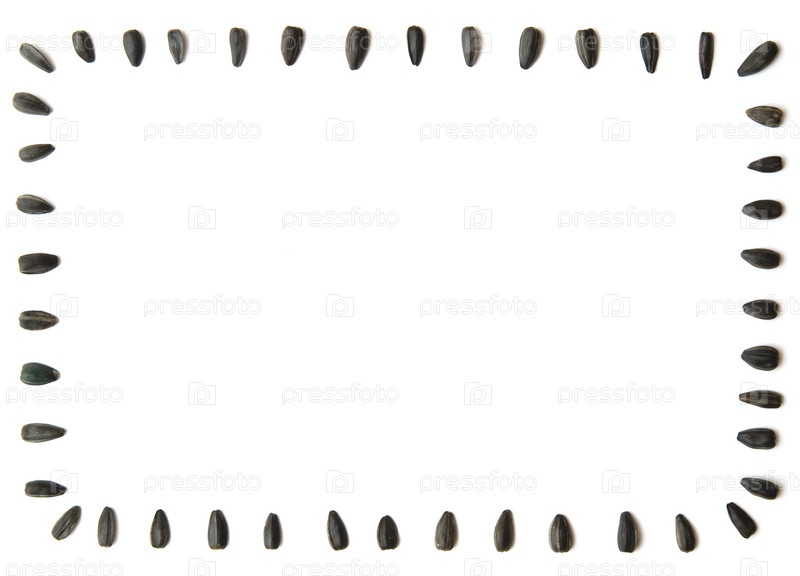 Черные семена подсолнечника на белом