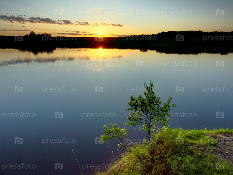 Летний закат на озере. Руза водохранилище в России