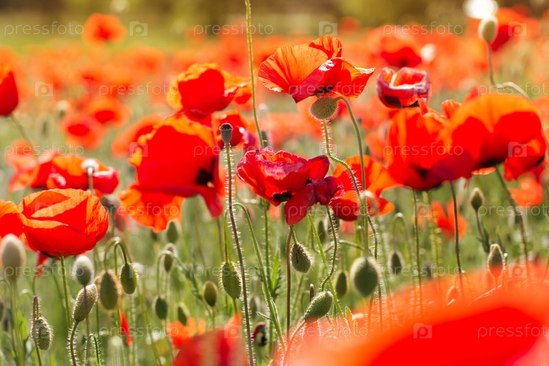 Прекрасное поле красное Цветы мака