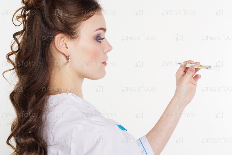 Довольно молодая женщина-врач с термометром