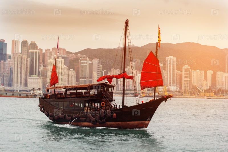 Гавань с туристическим кораблем в Гонгконге