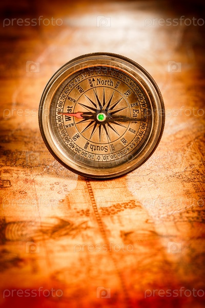 Компас лежит на карте античного мира