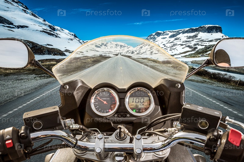 Байкер на горном перевале в Норвегии
