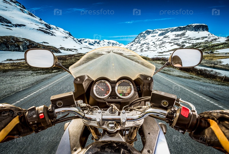Байкер на горном перевале в Норвегии