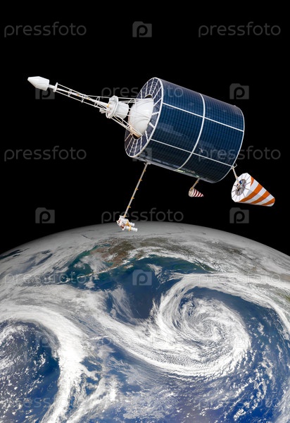 Космический спутник над на планете Земля