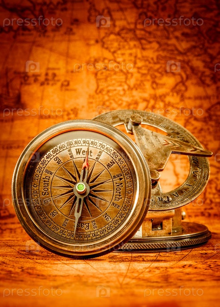 Компас лежит на карте античного мира