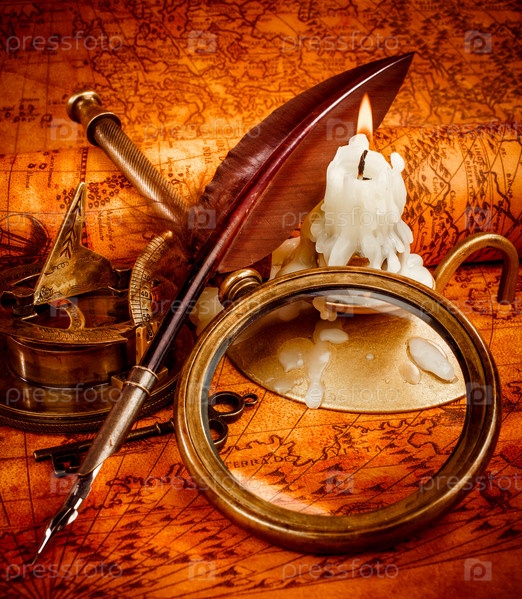 Винтажные натюрморт. Старинные предметы на древней карте