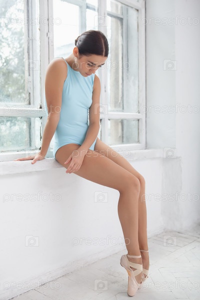 Современная балерина позирует на белом фоне