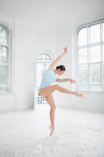 Современная балерина позирует на белом фоне