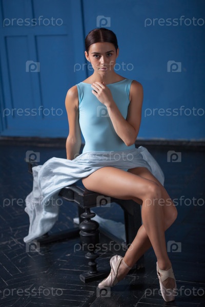 Современная балерина позирует на синем фоне