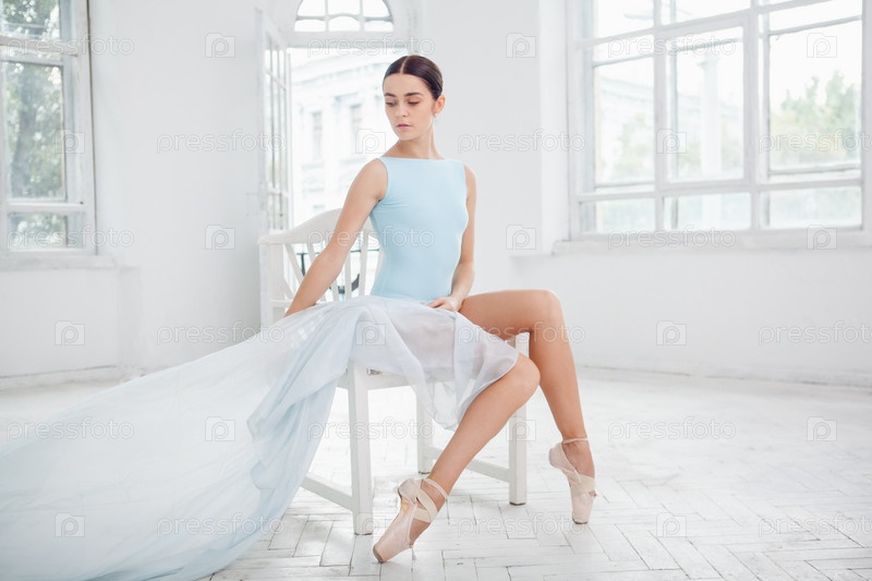 Современная балерина позирует на белом фоне