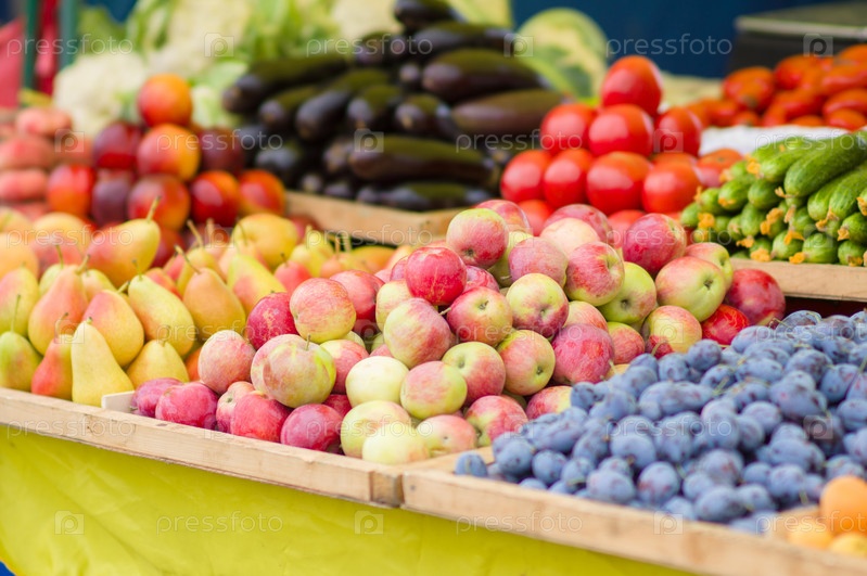Груши, яблоки, сливы, огурцы, помидоры, баклажаны в городской рынок