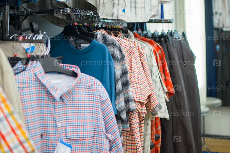 Одежда на стендах в супермаркете