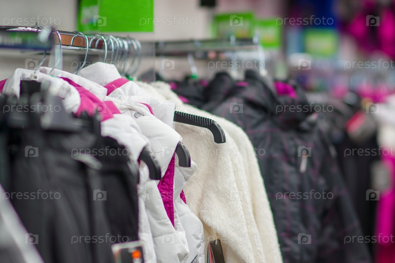 Одежда на стендах в супермаркете