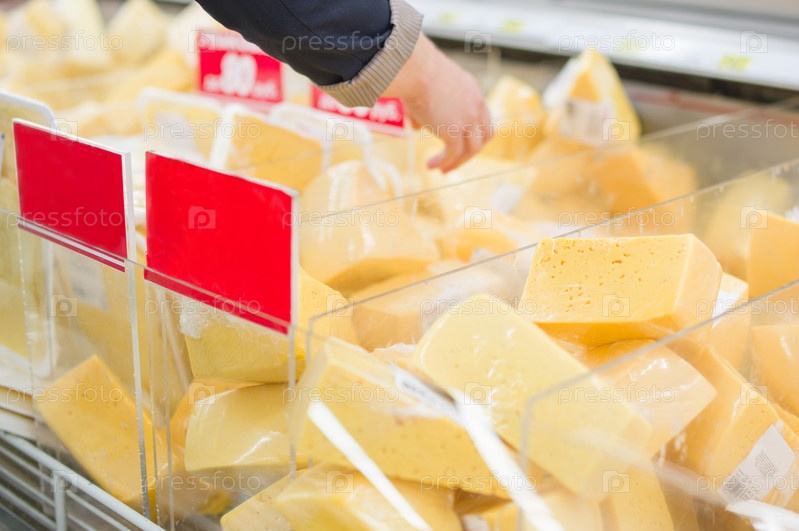 Различные куски сыра в супермаркете