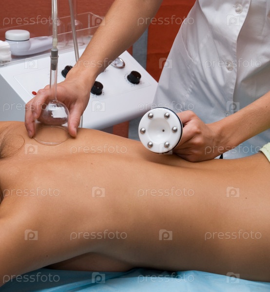 Женщине делают профессиональный массаж с помощью аппарата