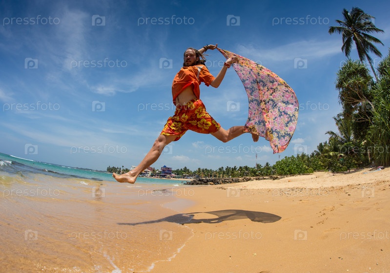 Мужчина пародирует девушку на пляже