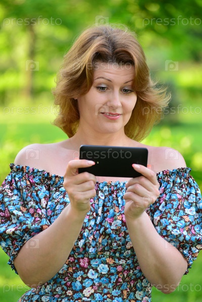 Женщина с телефоном в парке
