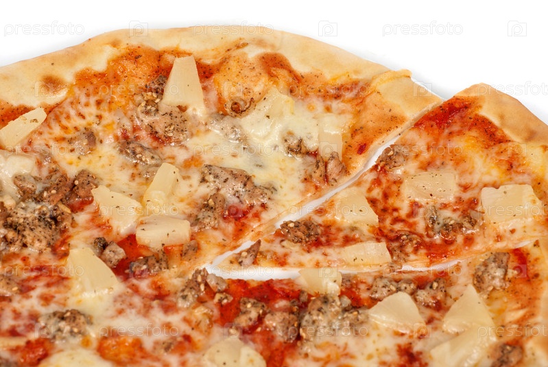 Гавайская пицца с жареной курицей, ананасами, чесноком и сыром моцарелла