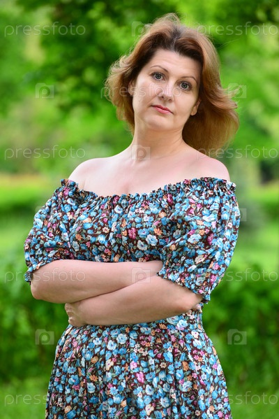 Стильная среднего возраста женщина в парке летом