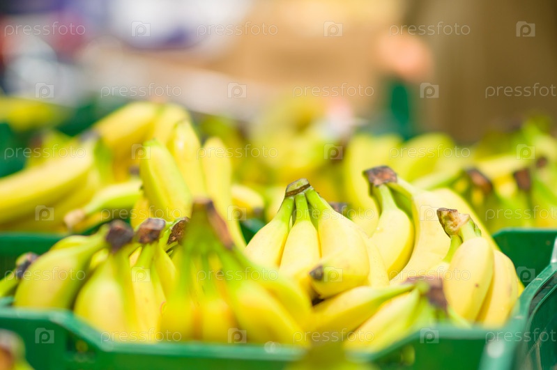 Связка бананов в коробках в супермаркете