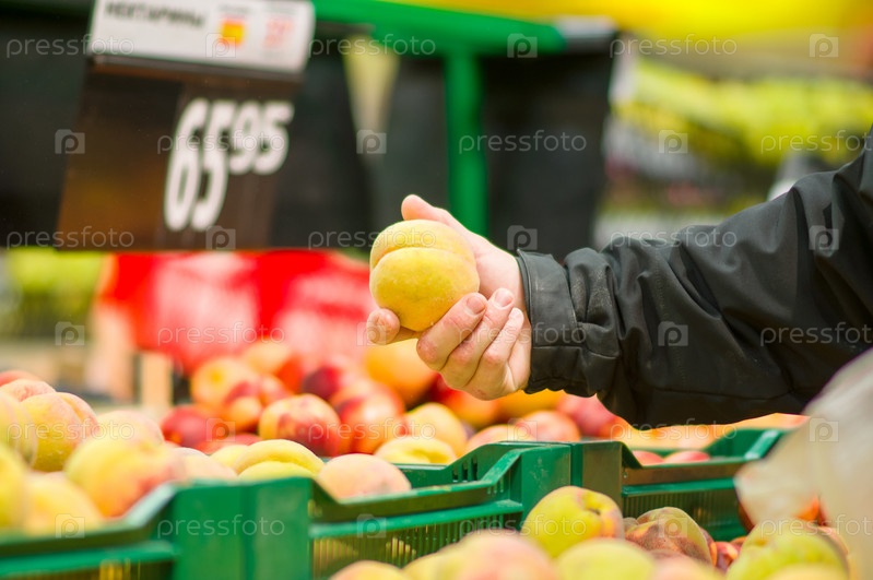 Выбор персиков в супермаркете