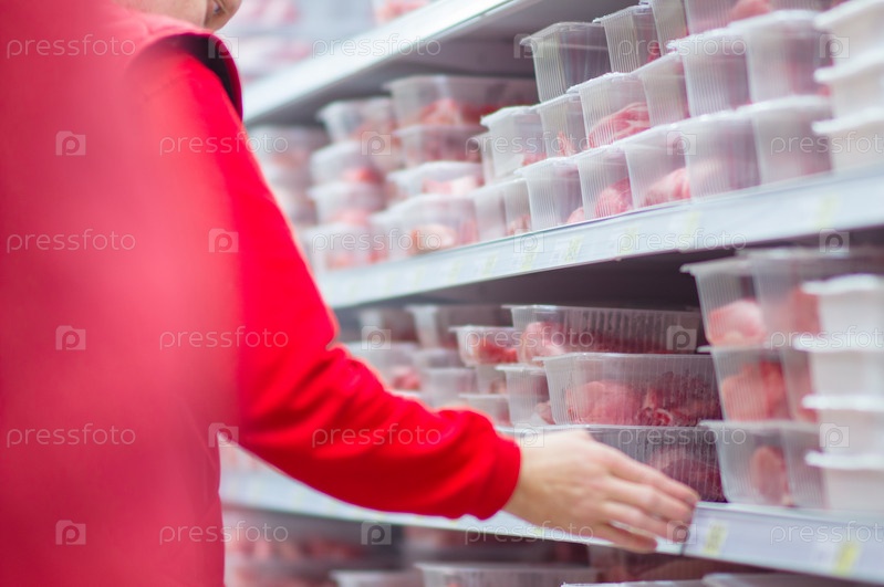 Мясо на полках в супермаркете