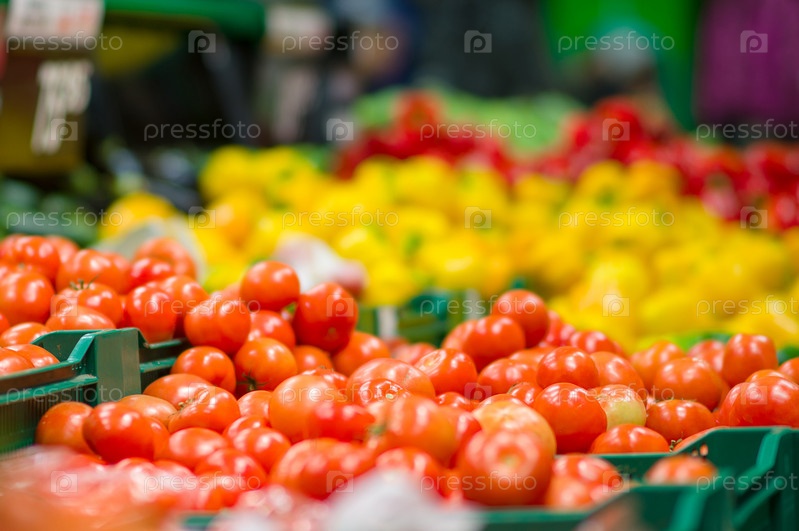 Разновидности томатов в коробках в супермаркете