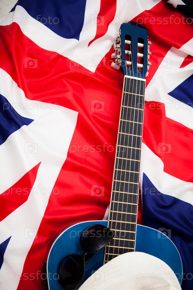 Гитара лежит на флаг Великобритании